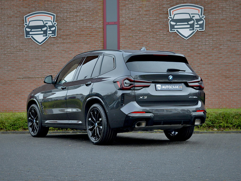 Rijklaarprijs incl. BTW. BMW X3 xDrive30e High Executive M Sport (215 kW / 292 pk / 420 Nm) S line in Sophistograu Brillanteffekt metallic. BMW dealeronderhouden. Elektrische actieradius: 58 km (WLTP).