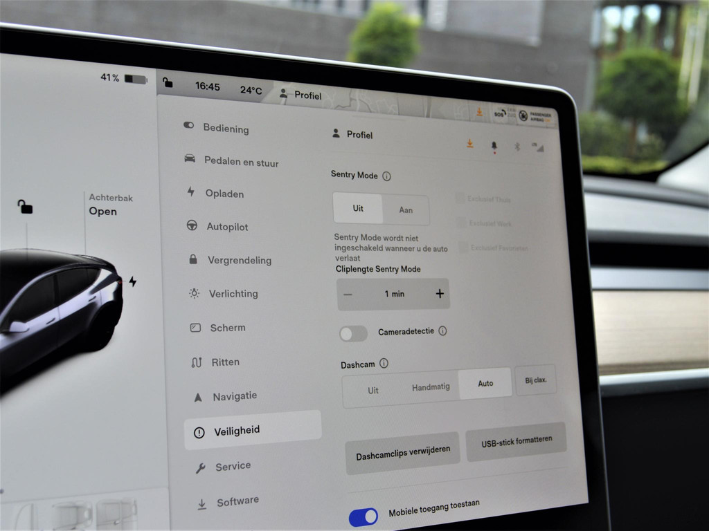 - AutoPilot (automatisch sturen, accelereren en remmen voor andere voertuigen en voetgangers)